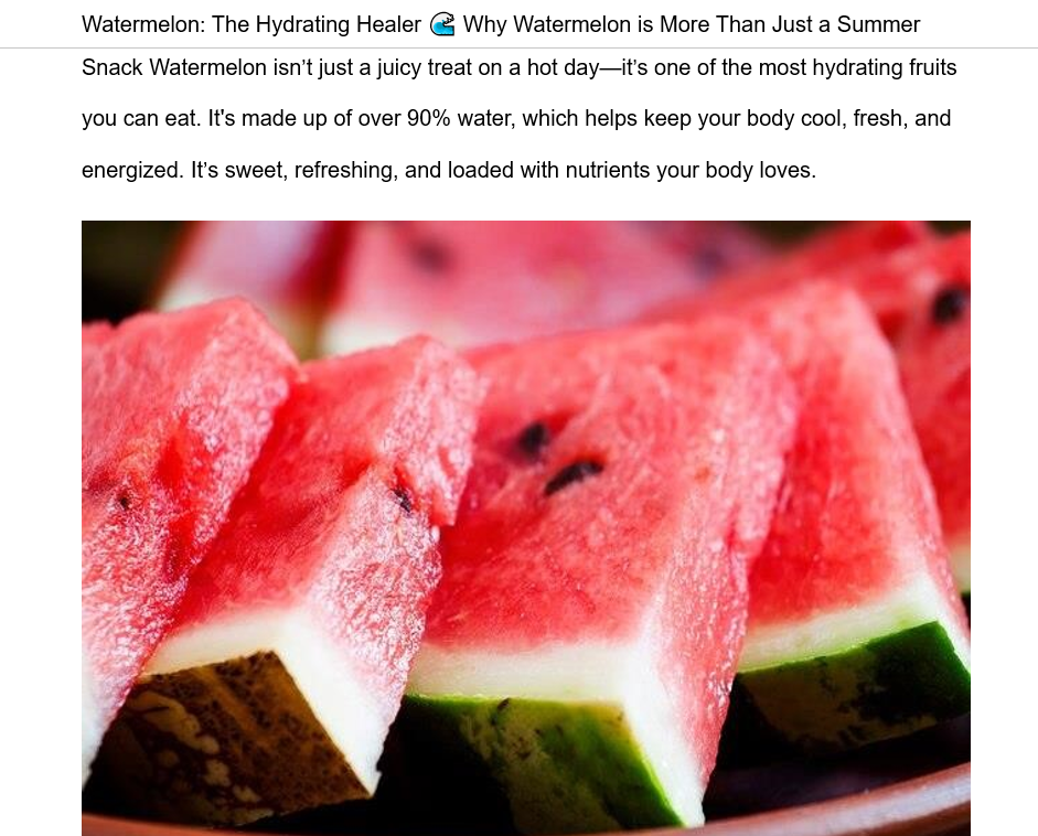 🍉 Watermelon — The perfect hydrating fruit that flushes toxins, supports the kidneys, and leaves your skin glowing.